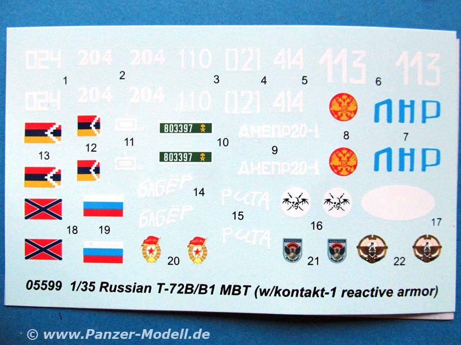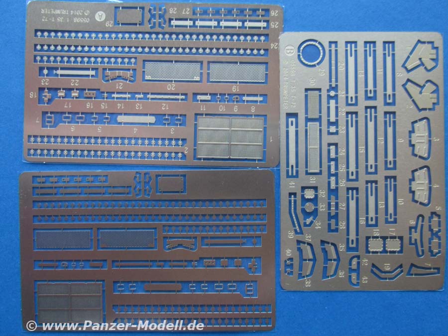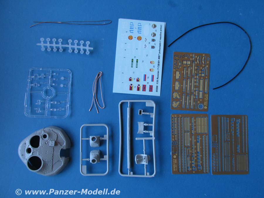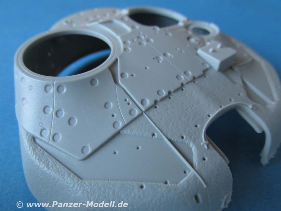 Oberwanne und Turm weisen tolle Details auf - aber es wird noch toller - denn die Schutzblöcke der kontakt Panzerung müssen einzeln auf das Modell gebracht werden - dabei gibt es unterschiedliche Typen dieser Blöcke die dann an den richtigen Stellen aufzubringen sind - eine irre Arbeit, bietet aber auch individuelle Gestaltungsmöglichkeiten.