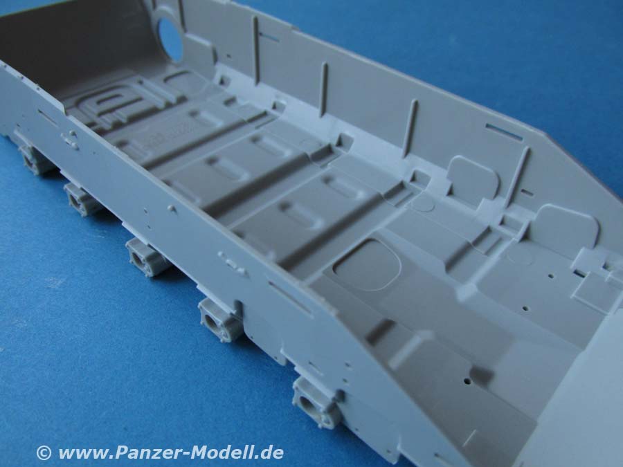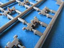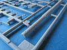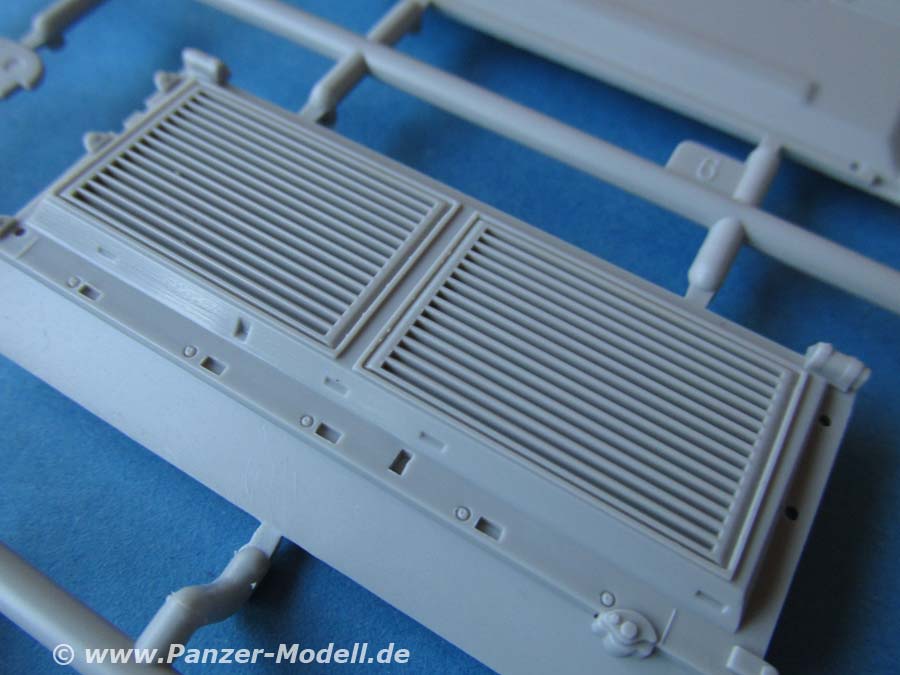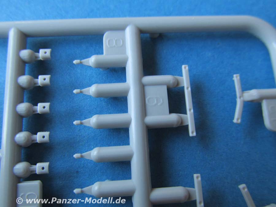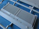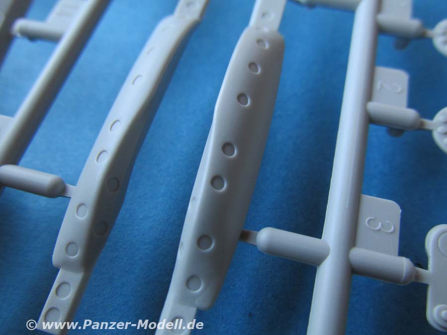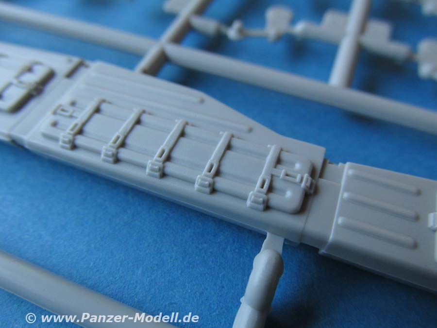 Die Seitenschürzen sind ebenfalls mit diesen Reaktiv-Blöcken versehen und hier muss der Modellbauer die einzelnen Schienen auch noch auf die Schürzen aufbringen. Dafür gibt es die Blöcke dann teilweise in Strängen zu sechs Stück. Alles in alelm sehr aufwändig aber absolut überzeugend gemacht.