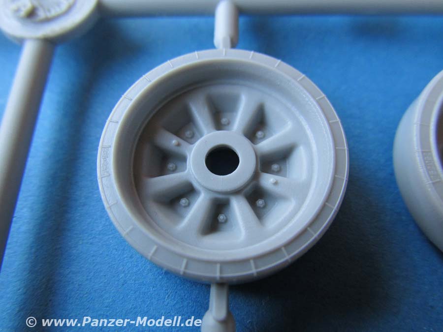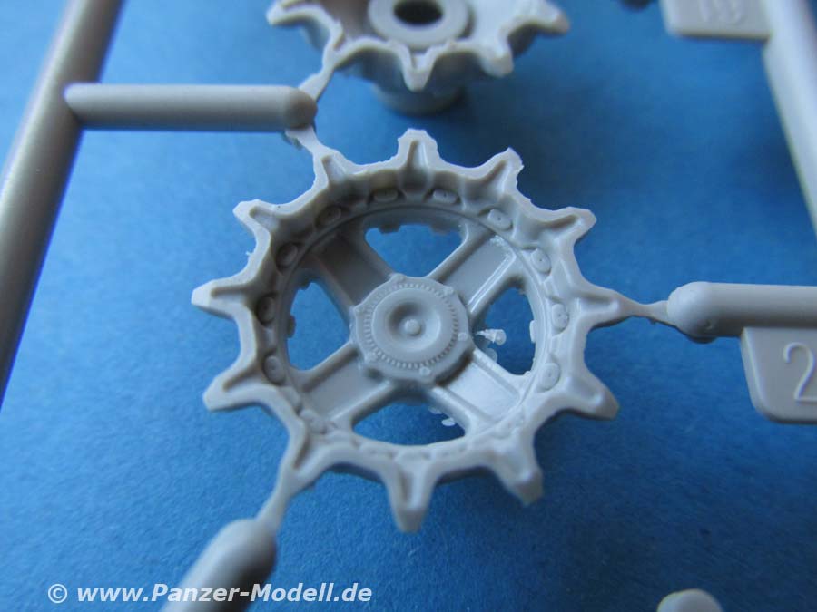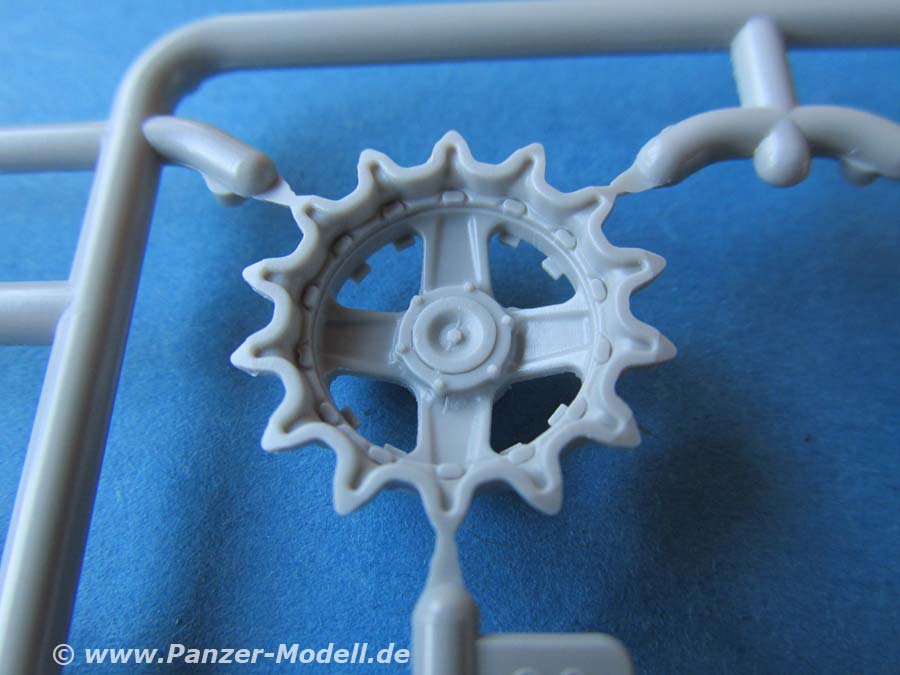 Laufrollen wie auch Leit- und Treibräder sehen gut aus mit feinen Details, insbesondere bei den Treibrädern. Was mich irritiert sind immer wieder die Segmentdarstellung der Gummierungen an den Laufrollen - ich will diese nicht bezweifeln, aber auf Fotos mir bislang nie so aufgefallen.