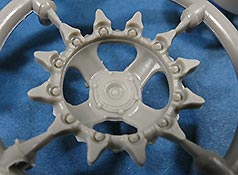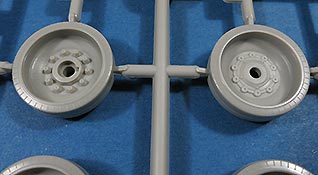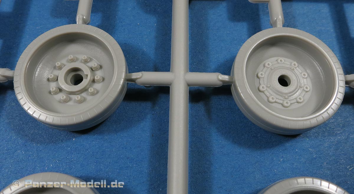 Die Laufrollen setzen sich aus der Innen und Aussenrolle sowie dem Nabendeckel zusammen und machen einen hervorragenden Eindruck mit den Details der Radmuttern und der Details auf den Gummierungen.
