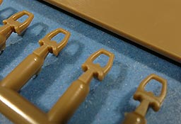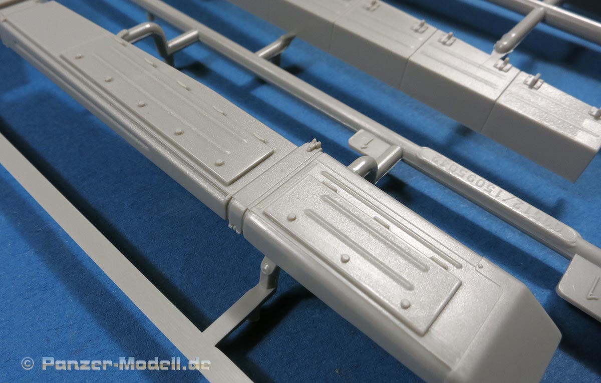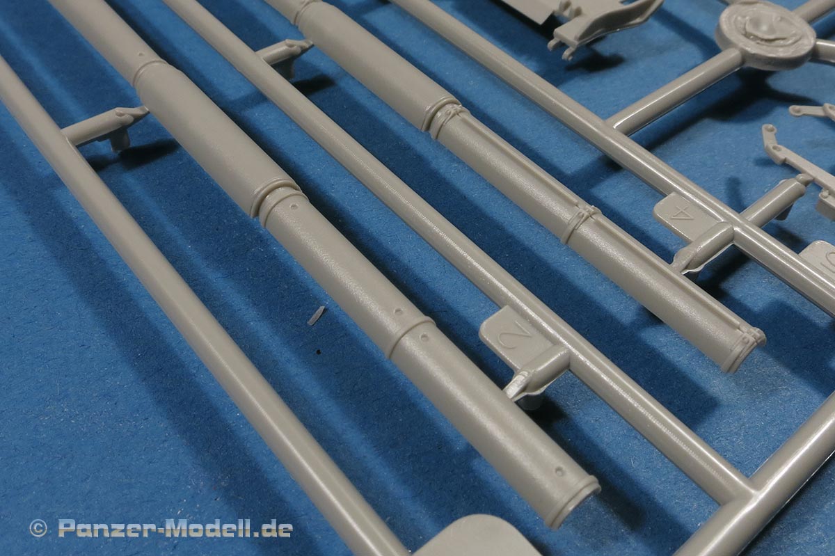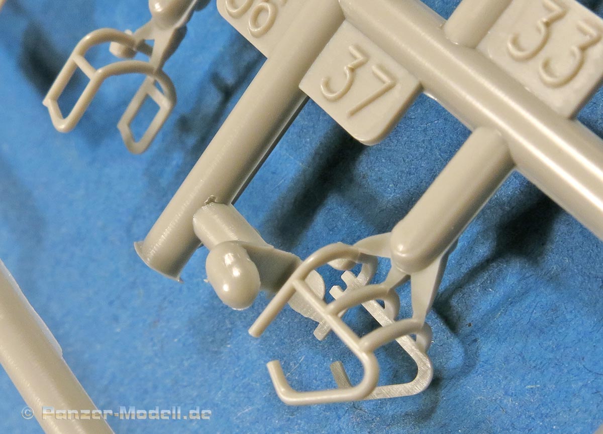 Die Teile machen, wie mittleweile bei Trumpeter üblich, einen exzellenten Eindruck. Hier finden sich an allen Stellen feine und scharfe Details, tolle Oberflächenstrukturen und ein tadelloser Guss ohne Verzug oder störende Auswerferstellen. Teilweise filigrane Teile bei denen man beim Heraustrennen sehr aufpassen muss, dass sie nicht brechen.