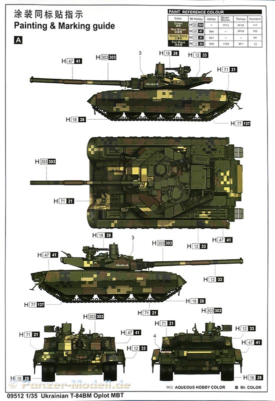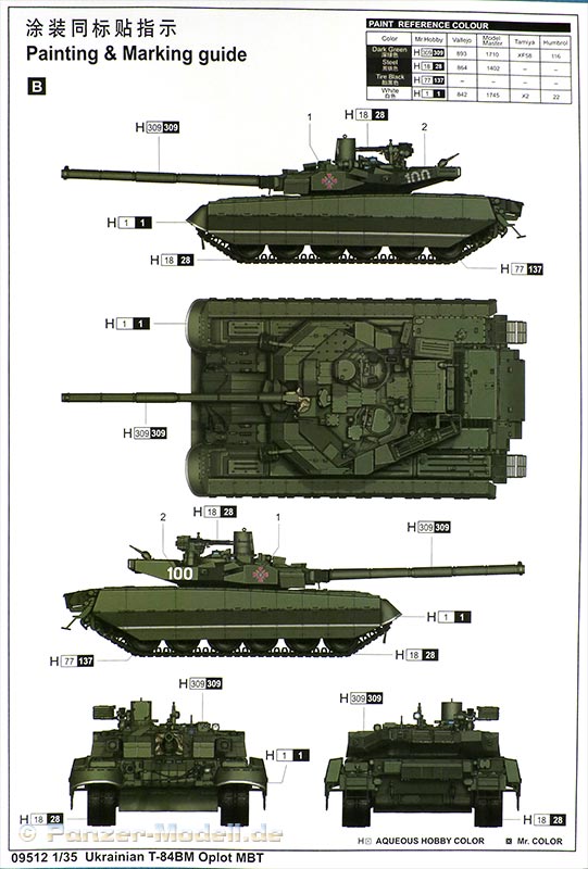 Die Farbangaben sind für Mr.Hobby, Vallejo, Model Master, Humbrol und Tamiya.