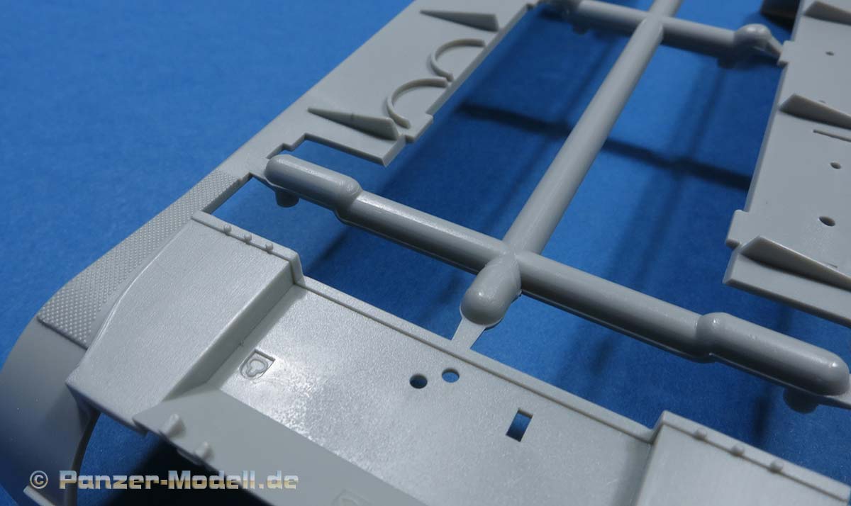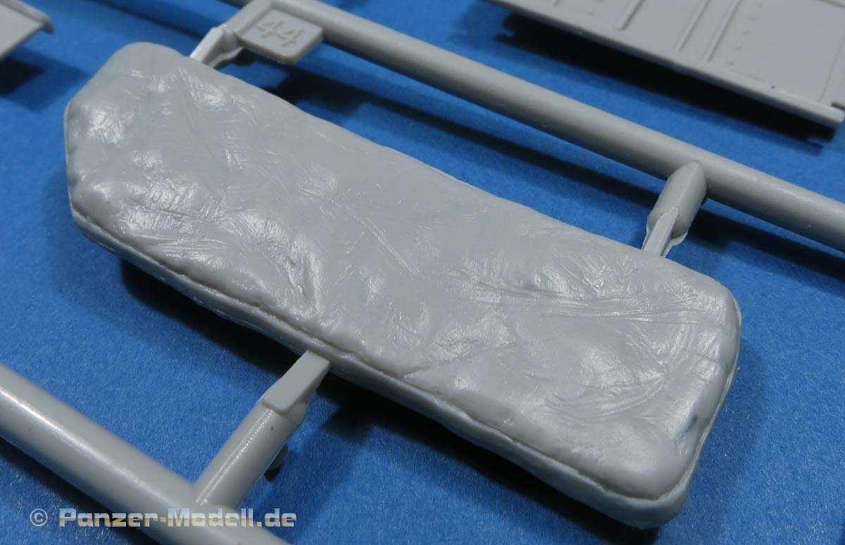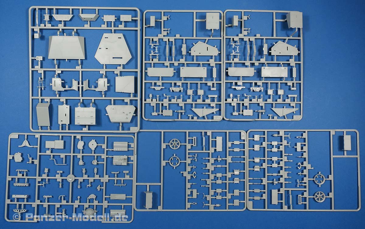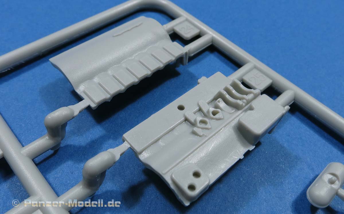 Die Plastikteile sind sauber ausgespritzt, ohne Grat und Versatz. Die Auswerfer sind meist auf den Spritzrahmen platziert. Die Klarsichtteile sind kristallklar, ohne Schlieren oder Kratzer.