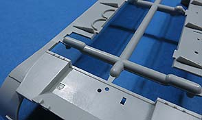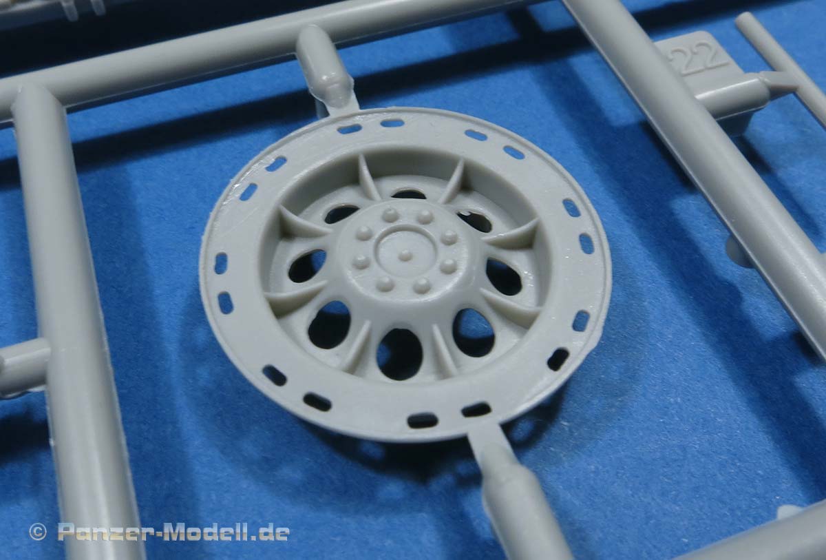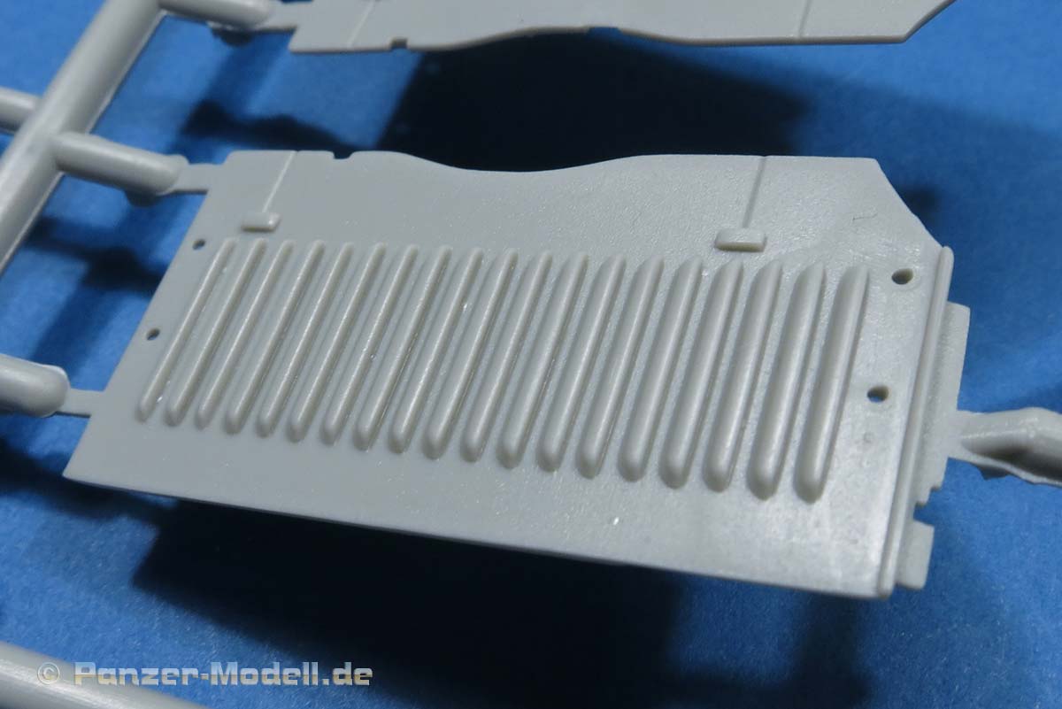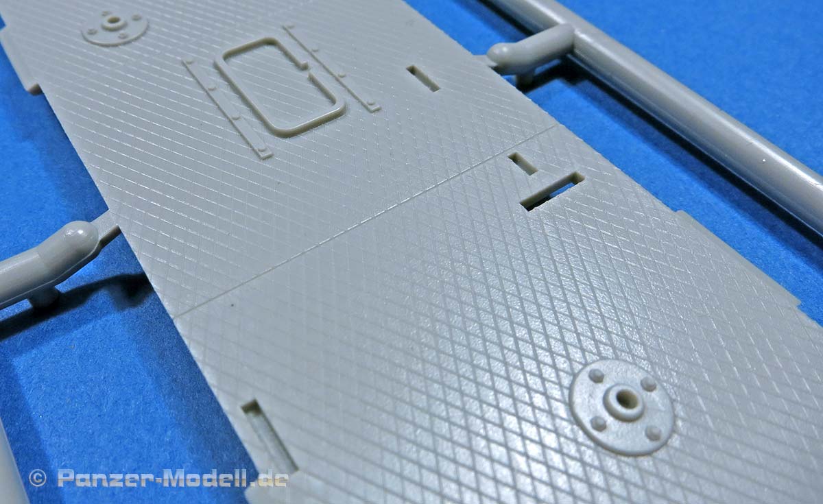 Die Plastikteile sind sauber ausgespritzt, ohne Grat und Versatz. Die Auswerfer sind meist auf den Spritzrahmen platziert. Die Klarsichtteile sind kristallklar, ohne Schlieren oder Kratzer.