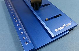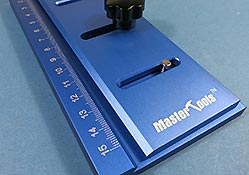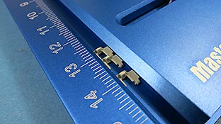 Die Vorgehensweise ist insgesamt so, dass das erste Kettenelement gei geöffnetem Schieber hinten an die weiße Kante angelegt wird und der Schieber dann exakt an das Glied angelegt wird. Wer es noch genauer haben wil, kann auf der anderen Seite auch ein kettenglied einlegen, damit der Schieber auf beiden Seiten exakt ausgerichtet ist.