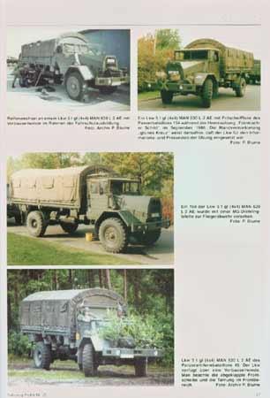 Textlich sind alle Bilder mit brauchbaren Bildunterschriften versehen, die jedem Leser vermitteln was er da sieht. Grobe Schnitzer sind nicht festzustellen. Zu jedem Fahrzeugtyp gibt es dazu ausführliche Beschreibungen der Entwicklung, Produktion und Einführung in die Bundeswehr. Dazu dann technische Daten, Änderungen über die Jahre, Abarten bis zum Zeitpunkt der Aussonderung aus dem aktiven Dienst. An Fahrzeugen finden sich unter anderem in diesem Band: LKW 0,25t MUNGA"F91/4 und /8, LKW 0,75t gl Borgward B 2000A, LKW 1,5t gl Unimog S 404 B, LKW 3t Ford G 398 SAM, LKW 5t gl Daimler Benz LG 315/46, LKW 5t gl MAN 630 L 2A/AE, LKW 7t gl von Magirus Deutz, LKW 10t glw Faun L 908/54 VA, Geräteträger glw Faun GT 8/15, LKW 12t glw Gleitkipper Faun L 912/5050 A, Zugmaschine 12t glw Faun 912/45a, Sattelzugmaschine 20t glw Faun Typ 912 VSA, Sattelzugmaschine 25t glw Faun Typ 1212/45 VSA, Autokran 13t glw Faun LK 1212/485 II und andere. Natürlich kann nicht bei jedem Fahrzeug ins Detail gegangen werden, aber man bekommt einen sehr guten Überblick über wichtiges Material dieser Zeit plus interessante Informationen zur Geschichte des betreffenden Fahrzeugs. Für Modellbauer und interessierte dieser Epoche ein sicher lohnenswerter Band Fahrzeug Profile Vol.25 "Radfahrzeuge des Heeres der Bundeswehr - 1.Fahrzeuggeneration 1956-1976" Die Hefte der Reihe "Fahrzeug-Profile" sind zu beziehen bei: |