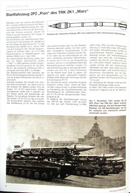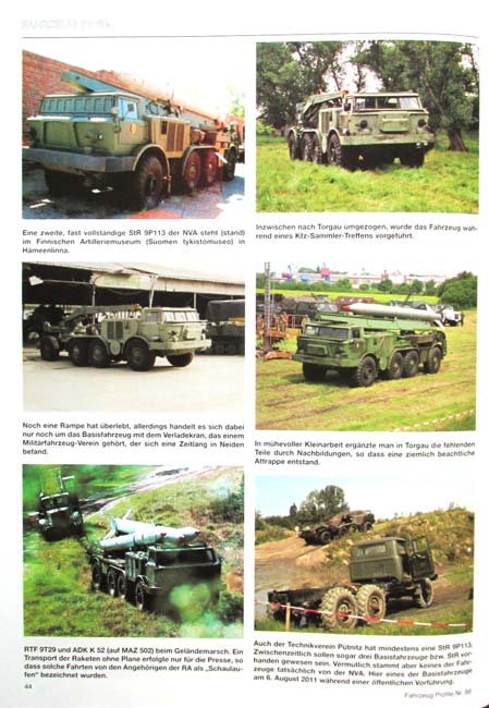 Auf den vorliegenden 48 Seiten hat der Autor Fred Koch sich der NVA Raketenwerfer FROG und SCARAB angenommen.. Die Fotos sind sowohl in schwarzweiß als auch in Farbe und von recht guter Qualität. Die Bildgröße ist bei 2-3 Fotos pro Seite angenehm groß. Das Heft beginnt mit den Grundlagen der Raketenwerfer, bzw. überhaupt der Raketentechnik mit der deutschen V1 und dem was sich daraus entwickelt hat. Das Heft kostet 11,80 Euro und kann direkt beim Velag bezogen werden. Fahrzeug Profile Vol.66 "FROG und SCARAB - taktische Raketenwerfer der NVA" Fred Koch Jahr: 2015, Vertrieb: Unitec Medienvertrieb Preis: 11,80 €