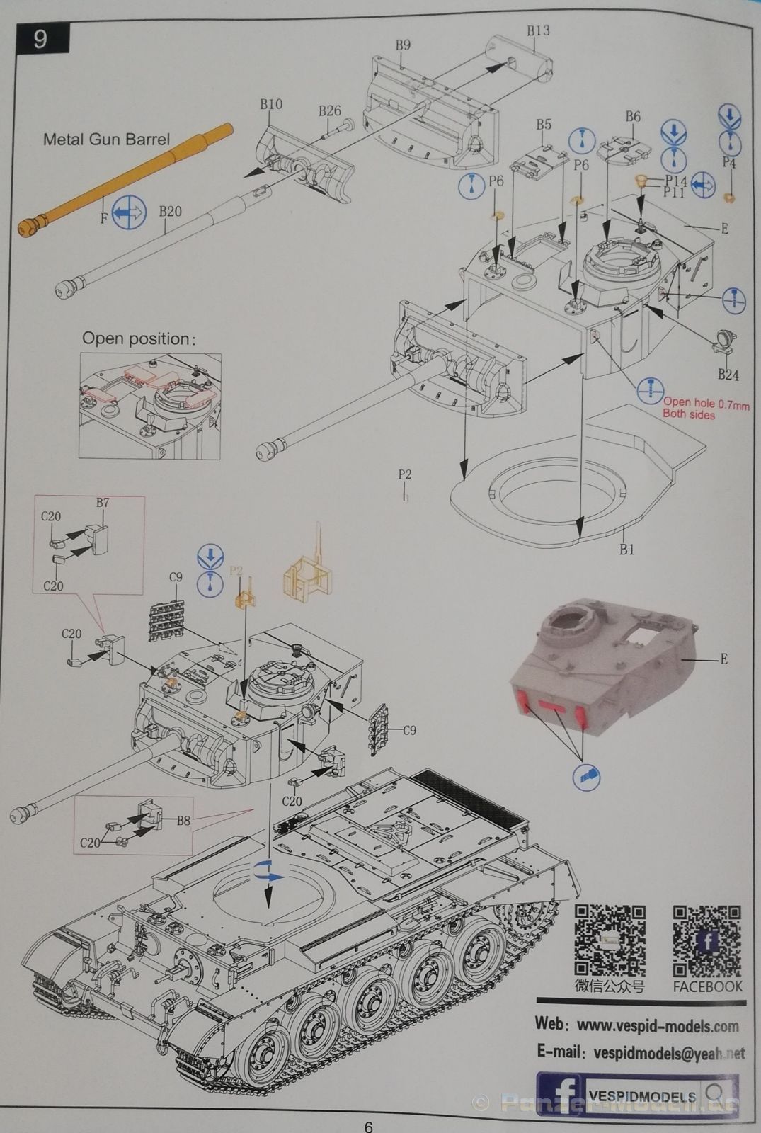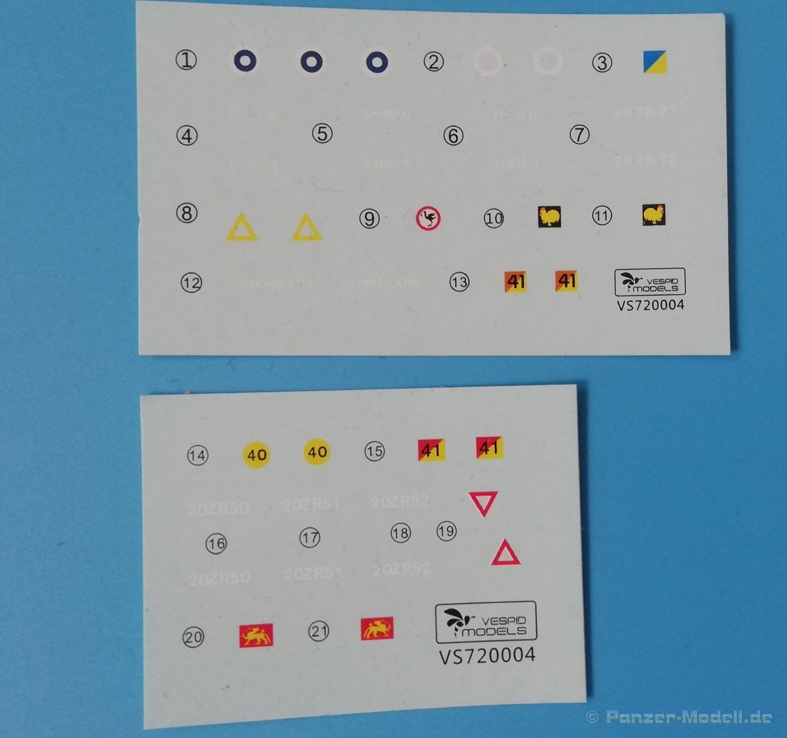 Der britische Comet war im Wesentlichen ein verbesserter A27M Cromwell. Die British Army meldete bereits 1943 Bedarf an einem Panzer mit einer stärkeren Hauptbewaffnung an, da die bisher verwendeten Kanonen nicht gegen die neuen Panther und Tiger Panzer effektiv wirken konnten. Der Panzer sollte dazu noch schnell sein und nicht zu hoch aufbauen. Der Cromwell war schnell und niedrig, aber sein Turm konnte keine größere Waffe aufnehmen. Dies führte zu einer Vergrößerung des Grundkonzeptes des Cromwell, bei dem ein neuer Turm mit der neue 17 Pounder High Velocity (HV) Kanone zum Einsatz kam (auch als 77er bekannt). Diese wurde aus der 17 Pounder Kanone entwickelt, wie sie bereits im Sherman Firefly, dem A30 Challenger und als Panzerabwehrkanone im Einsatz war. Mit dieser Kanone, und der verbesserten Panzerung, war es nun möglich auch gegen die damals modernsten deutschen Panzer zu bestehen. Es gab zwei Versionen des Comet Mk.I: Typ A und Typ B. Als einfachstes Unterscheidungsmerkmal sind die beim Typ B vorhandenen „Fischschwanz“ -Auspuffendrohre. Auch wurden Rauchbombenwerfer am Turm installiert. Die gummierten Stützrollen und Leiträder wurden später durch stählerne ersetzt, da sie dazu neigten sich mit Schlamm zuzusetzen. Es gab eine Reihe anderer weniger offensichtlicher Modifikationen wie ein neues Motorbelüftungssystem. Die Comet vom Typ B wurden erst dem Krieg in Dienst gestellt. Eingesetzt wurden die Comets von der britischen Territorial Army, bei der britischen Hong Kong Garrison, den irischen-, kubanischen-, südafrikanischen-, irischen- und finnischen Streitkräften. Selbst heute sind einige Exemplare noch in den Streitkräften Myanmars (Burma) aktiv. Der Hersteller Vespid Models präsentiert hier sein zweites Comet Modell. Der gut gefüllte praktische Stülpkarton des Bausatzes enthält: