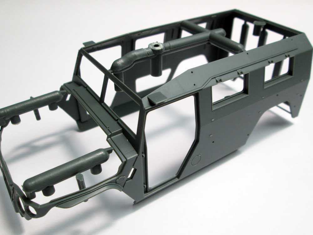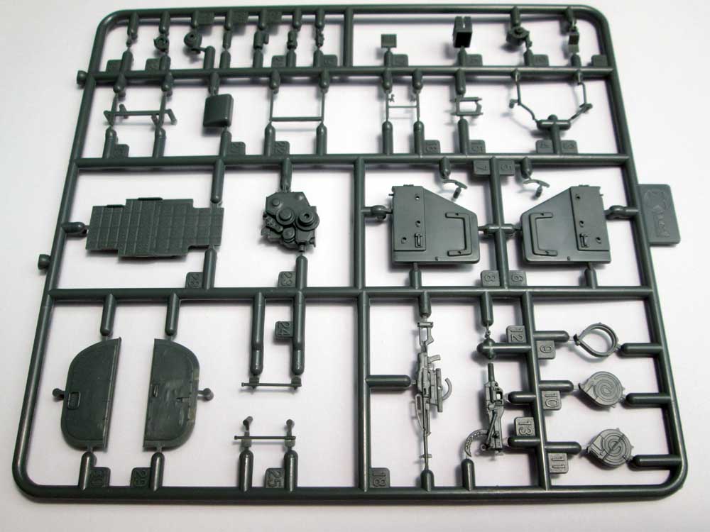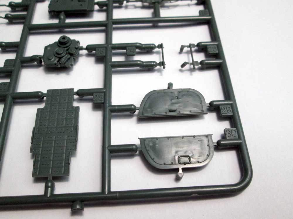 Der Bausatz besteht aus: 11 Spritzrahmen aus grau-grünem Plastik Die Bauanleitung ist als kleines Heft ausgelegt und beschreibt den Bau sehr detailliert und übersichtlich. Die Anleitung beinhaltet Farbangaben für Tamiya, Mr. Color und Vallejo Model Air und gibt eine einfarbig grüne und zwei Fleckentarnanstriche, jeweils in Fünf-Seiten-Ansichten, für das Modell vor. In den insgesamt 46 Baustufen finden sich jeweils Hinweise für die Bemalung der Details / die einzelnen Baugruppen. Auf Besonderheiten, wie z. B. die zu beachtende Ausrichtung von Bauteilen bei bestimmten Baugruppen wird jeweils nochmals explizit hingewiesen. Die Montage beginnt mit dem Fahrzeugrahmen und dem Fahrgestell. Da der Rahmen aus mehreren Einzelteilen zusammengesetzt werden muss ist besondere Sorgfalt bei der Ausrichtung der Teile geboten. Sonst kann es später schnell passieren dass später nicht alle Räder gleichmäßigen Bodenkontakt haben. Und nun sind wir schon bei den Rädern / den Reifen angekommen. Es liegen 5 schön detaillierte Gummireifen bei. Sie sind mit einer feinen Beschriftung auf den Reifenflanken versehen und machen einen richtig guten Eindruck. Eine ganz dünne Naht zieht sich über die Profilmitte, sie dürfte aber leicht zu entfernen sein. Ab Baustufe 11 beginnt die Montage des Motors. Und dieser Motor ist ein Bausatz im Bausatz. Der Detailreichtum ist überwältigend und es wäre eigentlich schade wenn man das Modell mit einer geschlossenen Motorhaube bauen würde. Für den zusätzlichen Minenschutz an der Fahrzeugunterseite liegen Fotoätzteile bei. Eine Zusatzzeichnung in der Anleitung zeigt deutlich deren exakte Ausrichtung und Positionierung. Auch der Innenraum des Tigers ist vollständig ausgestattet. Ich glaube da fehlt nicht mal irgendwo eine Schraube… Perfekt und tolle Details. Das große Karosserieteil weist innen einige Auswerfermarken auf. Aber keine Panik, sie werden später mit den Decals für die Fleckentarnung im Innenraum verdeckt. In der Baustufe 27 kommen etliche Fotoätzteile zur Anwendung. Aber sie sind nur optional für eine Superdetaillierung zu verwenden. Und darauf weist die Anleitung auch extra hin. Hier können Sicherheitsgurte, Regale und Halterungen im Innenraum des Fahrzeugs eingebaut werden. Für den Außenbereich der Karosserie können zusätzlich Schweißnähte ergänzt werden. Fotogeätzte Schweißnähte ... hauchdünn ... super detailliert ... Hammer! Habe ich eigentlich schon erwähnt dass sämtliche Türen, die Motorhaube und auch die seitlichen Fenster im Mannschaftsraum offen oder geschlossen dargestellt werden? Aber es gibt auch einen kleinen Wehmutstropfen. Die Klarsichtteile für die Scheiben hätten noch einen leichten grünen Schimmer aufweisen müssen um die Panzerglasscheiben realistisch darzustellen und das Abschleppseil besteht, leider einteilig mit den Halterungen, aus Spritzguss. Hier wäre ein Drahtseil die Krönung gewesen. Aber vielleicht verlange ich jetzt auch etwas zu viel!? Fazit: Ein Bausatz der fast keine Wünsche offen lässt. Aber auch ein Bausatz der sehr aufwendig gestaltet ist und viel Arbeit und Sorgfalt erfordert. Für Einsteiger ist er vielleicht etwas zu sehr detailliert, der fortgeschrittene Modellbauer wird jedoch seine Freude an diesem Modell haben. Rechtfertigt das den Kaufpreis von über 50,- EUR? Während der GAZ Tiger von Meng schon für unter 30,- EUR zu haben ist? Ganz klares Ja! Denn bei xact scale bekommt man ein weitaus besser detailliertes Modell mit vielen Optionen und kleinen Features die das Modellbauer-Herz höher schlagen lassen. Ganz klare Kaufempfehlung! Wir bedanken uns für die Zusendung des Musters bei Edward Shen von xact scale.
