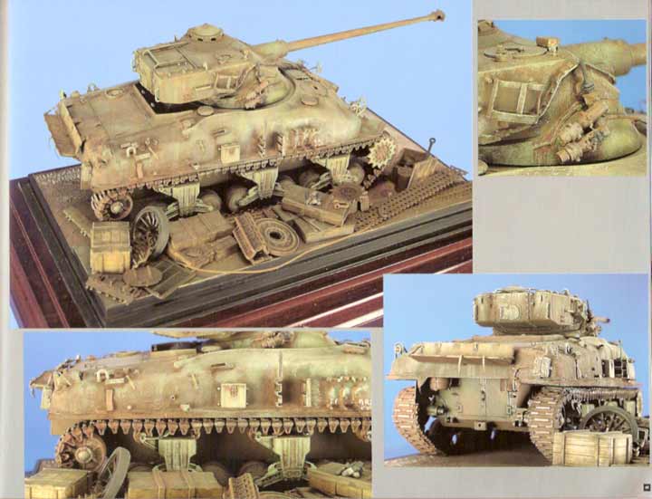 Fernando Perales zeigt dann auf 7 Seiten seinen hervorragend gestalteten Sherman FL 10 - schöne Fotos zeigen dieses aussergweöhnliche Fahrzeug - gerad die Bemalung kann sich wirklich sehen lassen. Abgeschlossen wird das Thema mit 2 seiten mit Fotos von einem Original, wenn auch etwas demoliert.