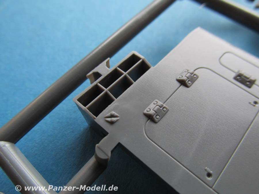 Auch das Panzerkastenoberteil ist mehrteilig ausgeführt. Die Fahrer- und Funkerluke sind offen oder geschlossen baubar.