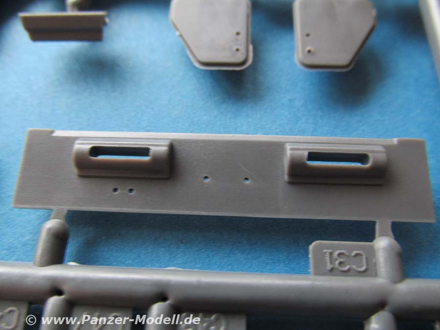 Für die Kettenbleche gibt es verschiedene Anbauteile je nachdem welches Fahrzeug man darstellen will - dazu gehören Werkzeuge, Kästen, etc.