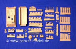 Beeindruckt haben mich vorallem die vielen Kleinteile für Nebeltöpfe, Werkzeug und dergleichen. Zwar ist hier leichte Versäuberungsarbeit fällig, da ein feiner Gussgrat vorhanden ist, aber die Detaillierung ist auch hier wieder sehr schön gemacht.