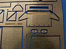Die langen Ausleger müssen aus dem beiliegendem Kuperrundprofil nach 1:1 Vorlage gebogen werden, was sicher etwas Übung erfordert. Die übrigen Teile liegen als PE Teile bei, wie etwa die Nebelbecherhalterung und Abdeckung, wie auch die kleinen Kettchen, sowie die Kiste, die die Sprengladung enthält - hier sind sogar feinste Nietenköpfe als PE Teile beigelegt. Desweiteren sind die Auslegerhalterungen und Seilführungen enthalten.