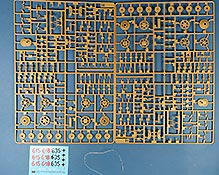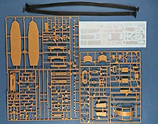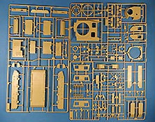 9 Spritzlinge in beigen Plastik, zwei Vinylketten, ein Bogen mit Zimmerit Decals, Seilmaterial und ein Bogen Decals.