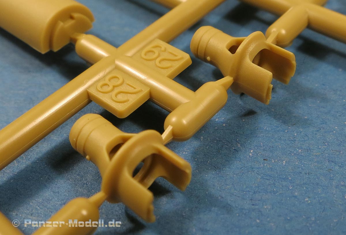 Auch die recht markanten Luftfilter der Ausf.H auf der rechten Seite sind im Bausatz enthalten.
