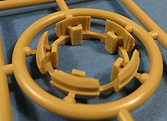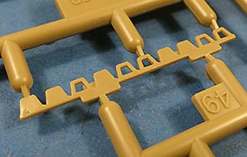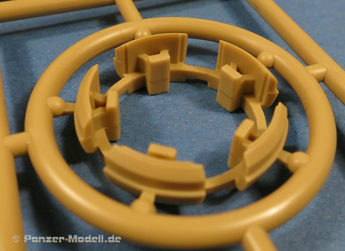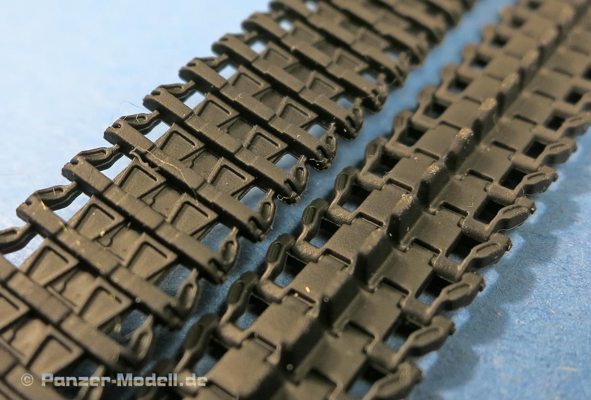 Die Kette liegt als Vinykettenstrang bei, der mit Sekundenkleber ind er Überlappung verklebt wird. Die Detaillierung ist ganz gut mit den passenden Strukturen und erfreulicherweise das Ganze ohne Auswerfermarken. Die Führungszähne sind in der soliden Version dargestellt.