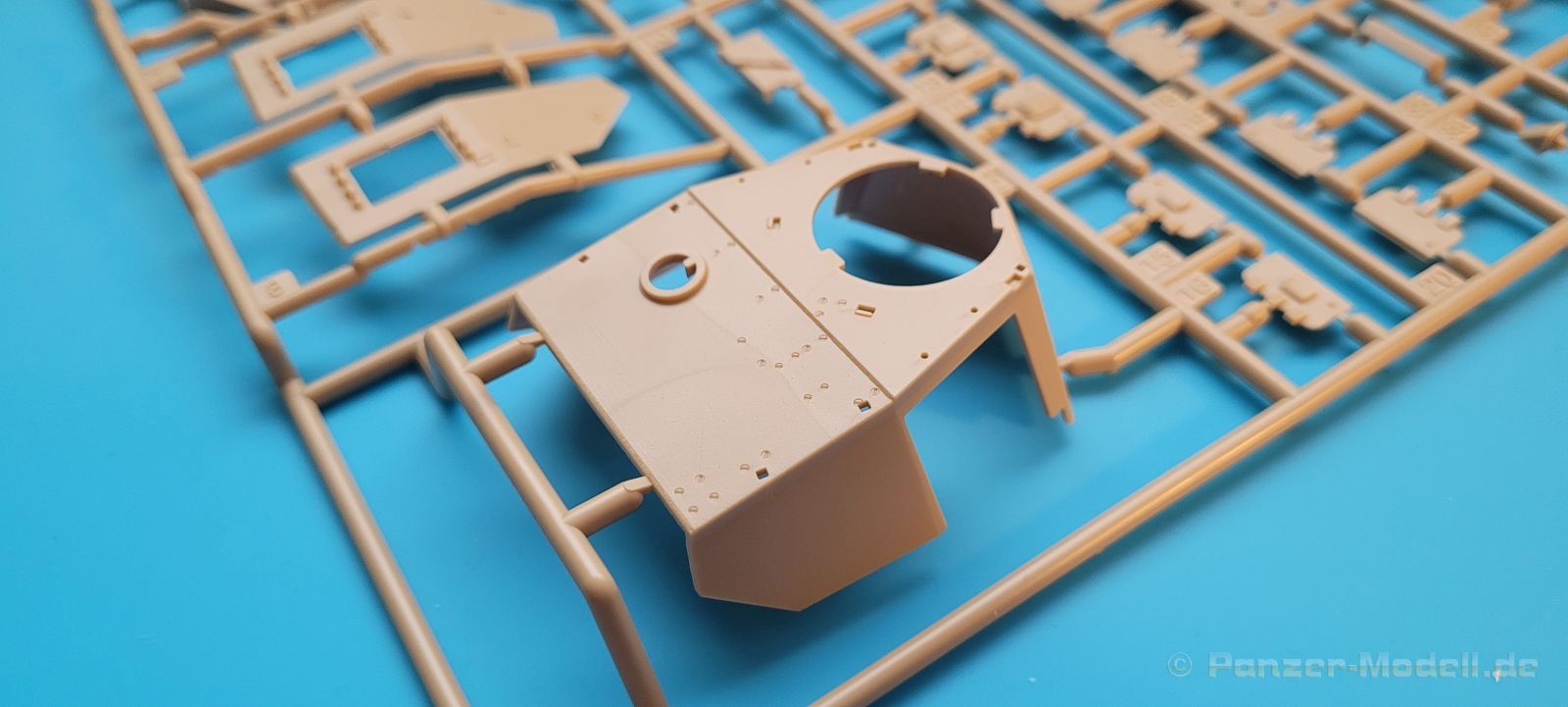 Die Wanne des Panzers setzt sich aus mehreren Einzelteilen zusammen, was aber bei der typischen Passgenauigkeit und des ausgeklügelten Systems von Verstärkungsrippen kein Problem darstellt.