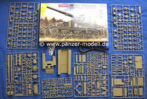 Das Modell umfasst sechs Spritzlinge plus Ober- und Unterwanne. Die Gußqualität ist über jeden Zweifel erhaben - keinerlei Verzüge oder Grate. Auch hässliche Auswerferstellen sucht man vergebens. Wie auch beim Achilles bietet Academy dem Modellbauer wieder die Möglichkeit das Fahrzeug entweder mit einem Laufwerk der frühen oder späteren Art auszustatten. Besonders positiv anzumerken ist einmal mehr die hervorragende Inneneinrichtung des M12 - es wäre schön wenn andere Hersteller sich hier einmal eine Scheibe abschneiden würden...