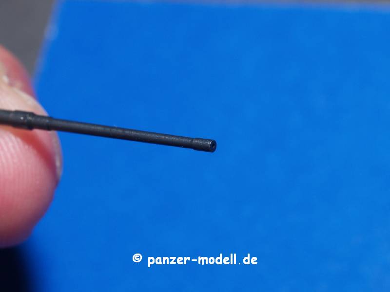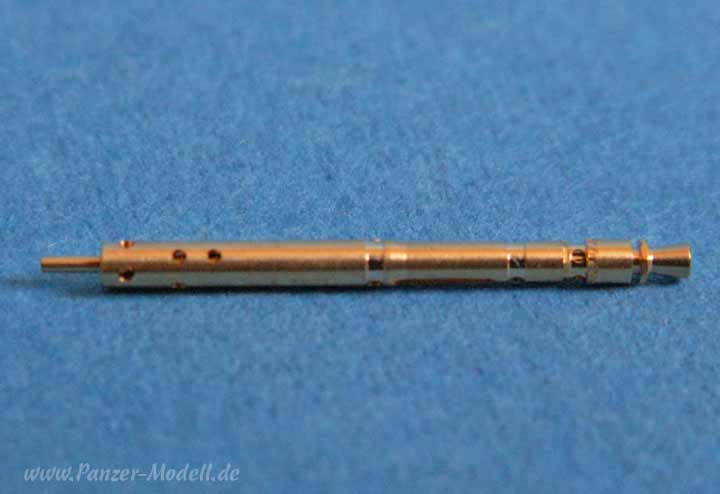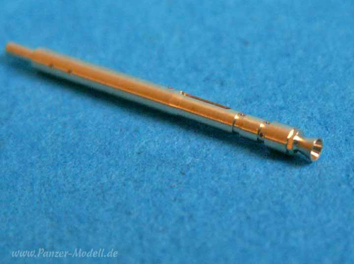 Die Detailierung ist sehr gut mit feinen Abstufungen und Bohrungen. Die Münsung ist konisch gestaltet und natürlich mit Mündungsöffnung versehen. Leider nicht ganz billig, aber eine gute Aufwertung des Panzer Modells.