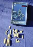 Aires bietet hier mit Set F-3007 zwei schön gegossene Resinfiguren aus mehreren Einzelteilen (sogar die Schuhe sind einzeln) , die einen guten Eindruck machen, und von den Posen wunderbar zu jedem Panzer beim Kettenaufziehen passen! Der Listenpreis für dieses Set beträgt 19,95DM und scheint sein Geld wert zu sein!