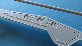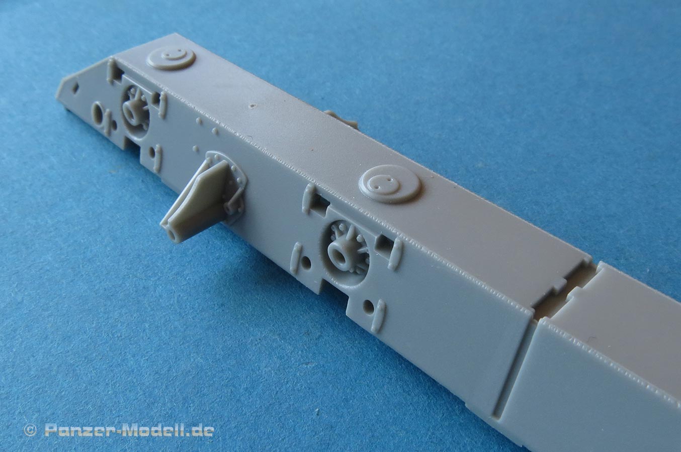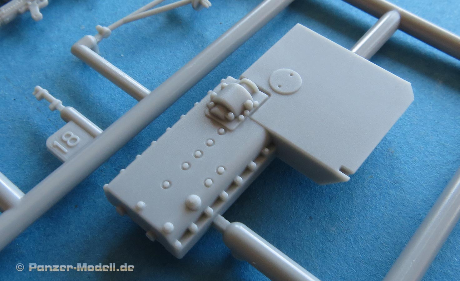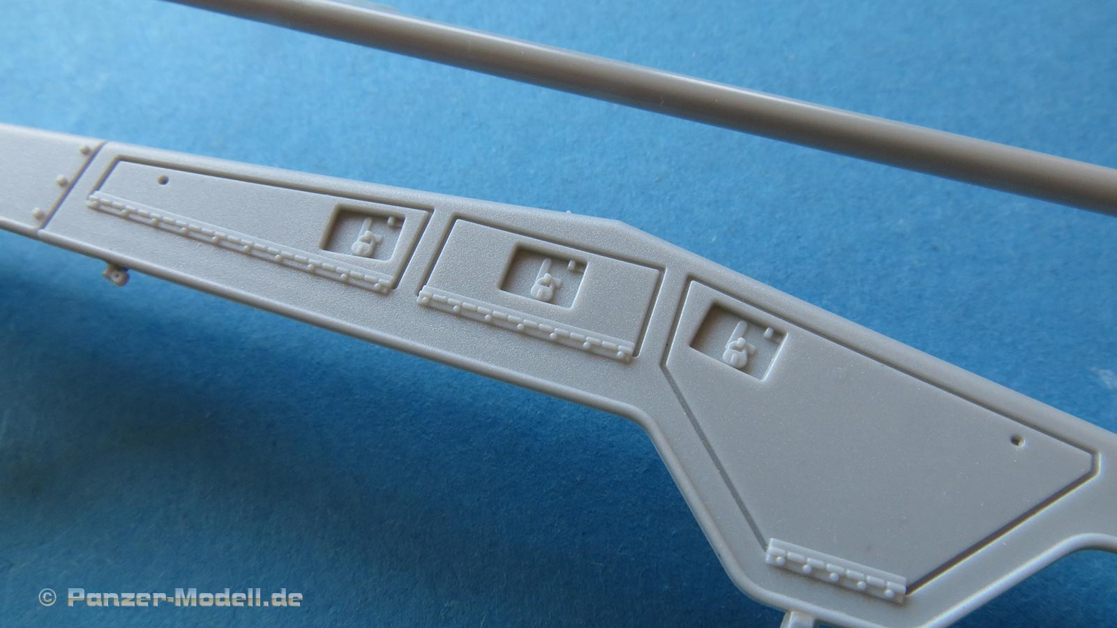 Die beiden Radabdeckungen mit Staukästen sind auch jeweils in einem Teil gespritzt, was den Anbau sehr vereinfacht. Die Staukästen sind allesamt geschlossen dargestellt.