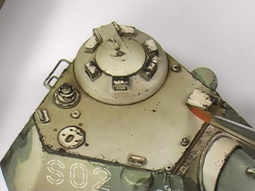 Einer der interessantesten Effekte, der hier genau dargestellt wird, ist das fading - hier werden großzügig verschiedene Ölfarben auf das Modell getupft und dann mit Verdünner ineinander und das Modell übergeblendet um am Modell Farbschatten, Laufspuren und Nuancen zu erzielen, die dem Realismus zugute kommen. Interessant hierbei, an welchen Stellen man logischerweise welche Farben verstärkt auftupft.