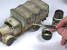 Dann geht es ans Eingemachte - insgesamt zeigt Mig an zwei Modellen (einem Opel Blitz und einem KW-2) wie man mit welchen Methoden einen schönen und verwitterten Wintertarnansprich hinbekommen kann.