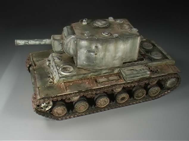 Am zweiten Modell, dem KW-2 in 1:16, geht es dann um Wintertarnung auf dunkelgrünen Fahrzeugen. Dazu wird detailliert das Vorgehen der entsprechenden Aufträge gezeigt und vor allem die genaue Vorgehensweise bei Nutzung der Haarspray Methode, von der schon viele Modellbauer gehört haben, aber die wenigsten sich trauen umzusetzen - hier kann man genau beobachten was man wie wo machen kann und soll. Die Ergebnisse sind auf jeden Fall faszinierend.