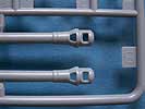 An Teilen ist alles enthalten, was zum Bau der 8,8cm PaK benötigt wird - das Rohr ist aus Plastik in zwei Halbteilen und von akzeptabler Qualität. Das große Schutzschild ist auch in Plastik und dadurch vielleicht eine Idee zu dick im Maßstab, aber mit diversen Schrauben und Nieten nett dargestellt. Die Räder des Sd.Ah. sind vom Prinzip her gut gelungen und sogar mit Seitenaufdruck versehen, allerdings habe ich diesen Typ Reifen noch nie an so einem Sd.Ah. gesehen. Auch der Anhänger, bzw. die Lafette der PaK an sich sind dann doch seltsam, denn mir sind keine Fotos dieser Konfiguration bekannt. Man munkelt, dass es sich hier um den Unterbau für das 5,5 cm Gerät 58 Versuchsgeschütz von Rheinmetall handelt.