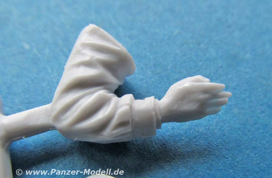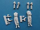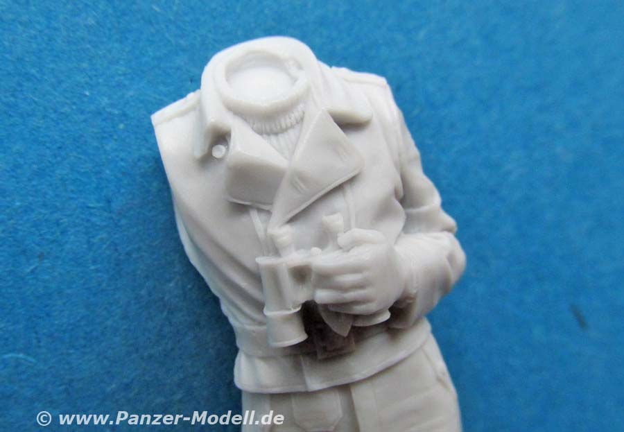 Beide Figuren sind ebenfalls einzeln unter den Nummern 35187 und 35188 erhältlich. Die Figuren setzen sich jeweils aus mehreren Teilen zusammen. Grundsätzlich ist der Körper in einem Stück gegossen an den jeweils die Arme und der Kopf angeklebt werden müssen. Wie von Alpine gewohnt, liegen für jede Figur zwei Köpfe zur Auswahl bei. Beide Köpfe haben Endweder die Feldmütze oder das Schiffchen auf, jeweils mit darüber getragenen Kopfhörern. Die Darstellung der Gesichter ist sehr gut gelungen mit feinen Details. Auch der Rest der Figuren weist eine sehr schöne Gussqualität auf - der Faltenwurf der Kleidung ist sehr gut und realistisch. Dies beinhaltet auch wieder die obligatorischen Ferngläser, die umgehängt vor der Brust direkt auf dem Körper angegossen sind und einen ausgezeichneten Eindruck machen. Eine der beiden Figuren hat den linken Arm auch bereits mit angegossen und die Hand umschließt einen Teil dieses Fernglases.. Von den Posen her sind beide Figuren in locker stehender Haltung, wie man es von Alpine gewohnt ist. Allerdings sind die Armhaltungen so, dass man sie in offenen Luken von Panzern einsetzen kann, ja eigentlich muss. Ein nettes Set zur Bereicherung eines bzw. zweier Panzerfahrzeuge. Für rund 30 Euro bekommt man hier ein schönes und qualitativ hochwertiges Set.
