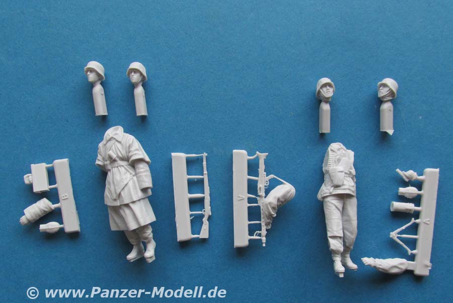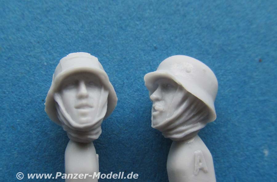 Wie von Alpine gewohnt, liegen für jede Figur zwei Köpfe zur Auswahl bei. In diesem Fall jeweils beide mit Stahlhelm, je einmal mit und ohne Tarnbezug.