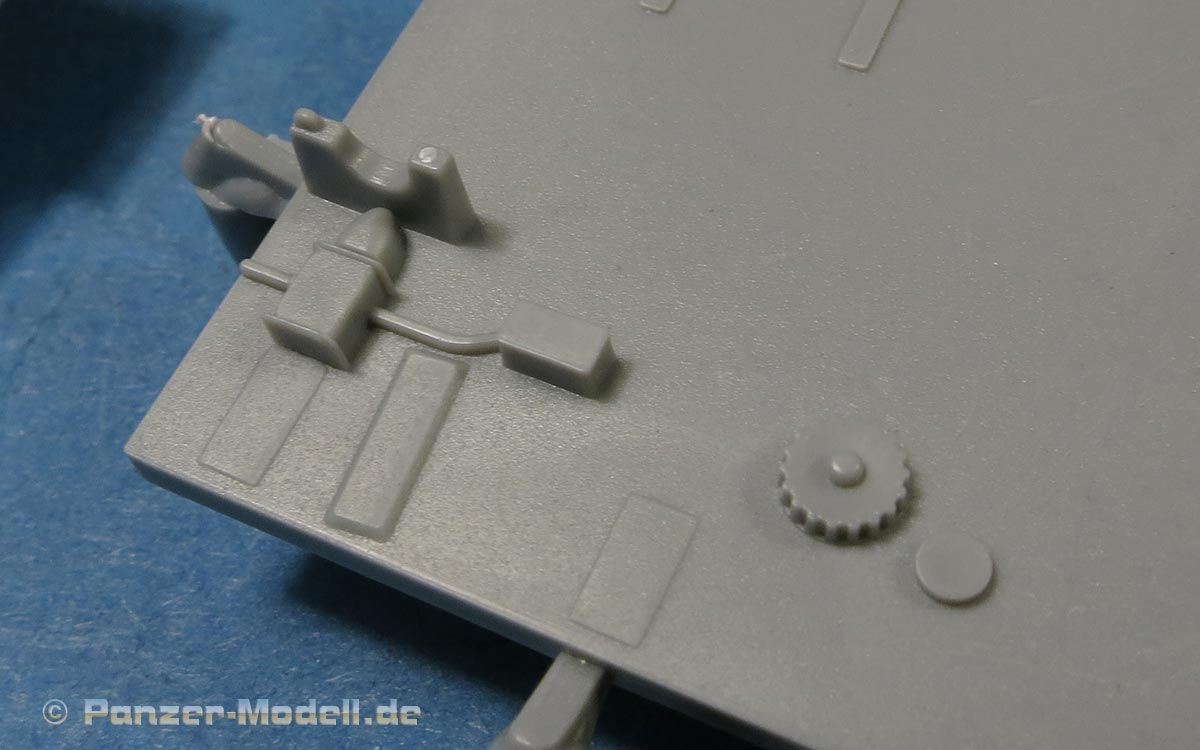 Die Luken für Fahrer in der Wanne und die Luken im Turm sind allesamt offen und geschlossen baubar. Die Kommandantenkuppel bleibt drehbar und weist einige schöne Details inklusive der Gussnummer auf, die sehr schön und markant dargestellt ist.