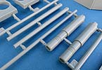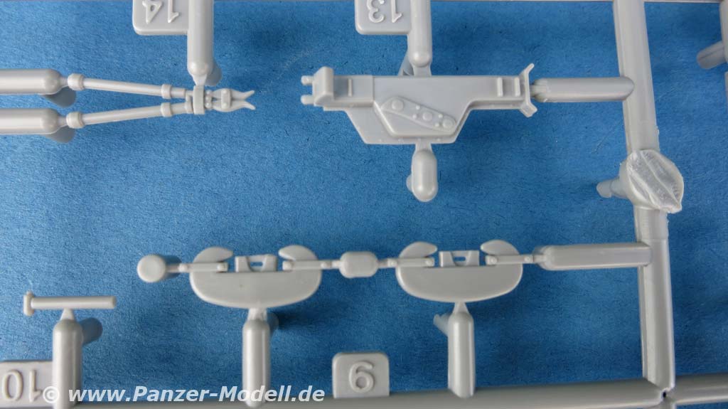 Die Bauteile des Bausatzes sehen ausgezeichnet aus und sind recht übersichtlich, was schnellen Bastelspaß verspricht. Der Guss der Teile ist einwandfrei ohne Auswerferstellen, Fischhäute oder verzogene Bauteile. Der Detailgrad ist sehr gut und zeigt saubere und feine Details.