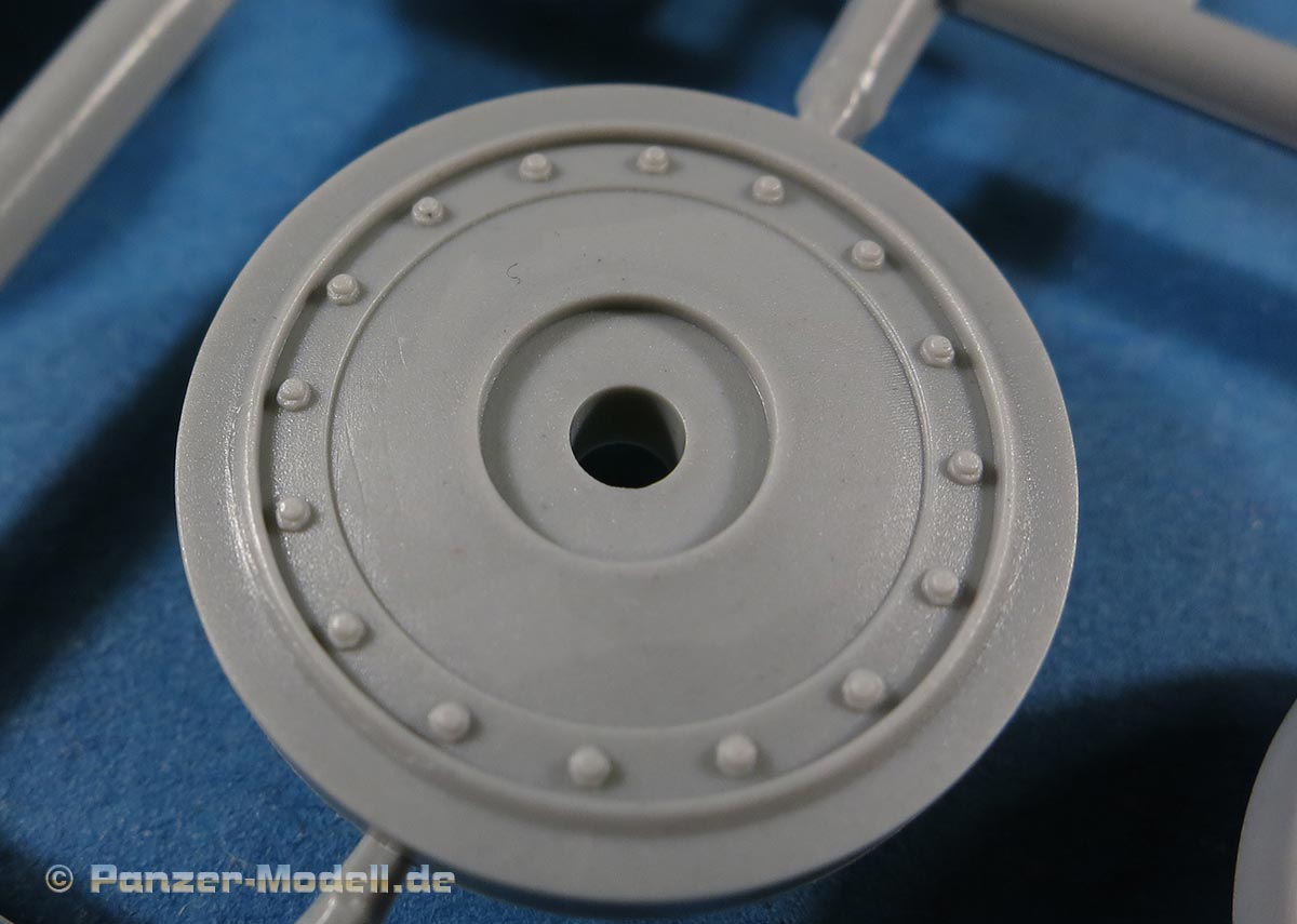 Das Laufwerk besteht aus den 8 Laufrollen, die schön detailliert mit den Radbolzen sowohl auf der Innen- als auch Aussenseite dargestellt sind.