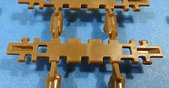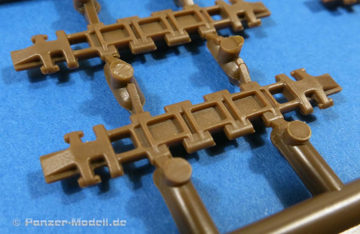 Ein weiterer Clou des Bausatzes ist sicher die Kette - scharfe, saubere Details, keinerlei Auswerferstellen, nur zwei Angüsse pro Hauptkettenglied, vier Angüsse pro Zwischenglied UND die Kettenteile lassen sich einfach ineinanderklicken und halten die Kette recht stabil zusammen. (Ich wäre am Ende trotzdem vorsichtig mit washing Lösungen auf der Kette, die ggf. die kleinen Plastikstifte porös machen).