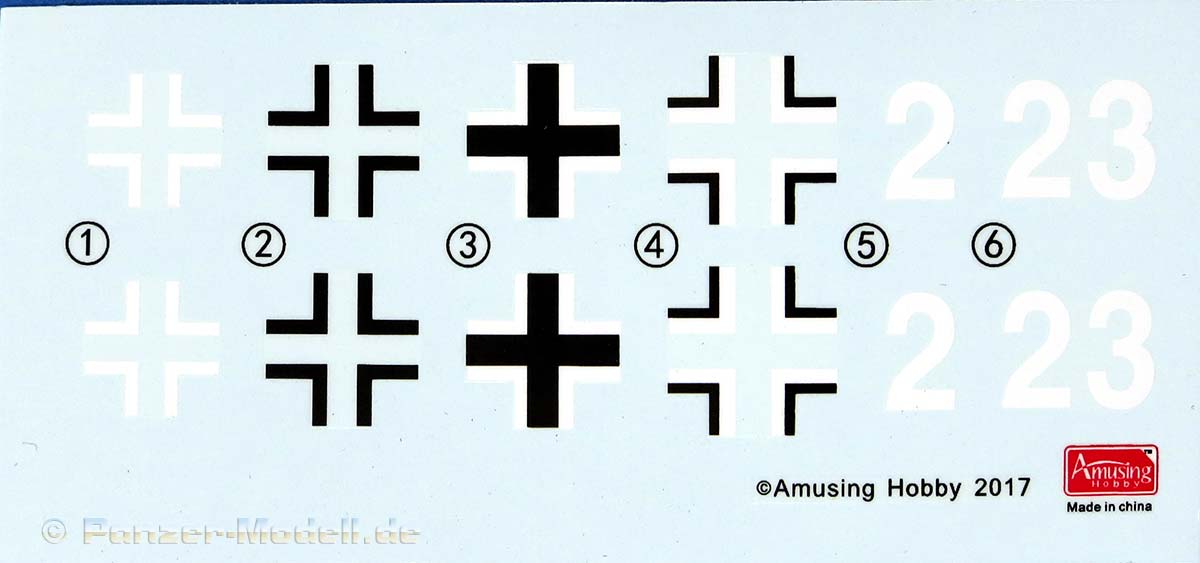 Die Bauanleitung ist im typischen und bewährten Amusing Hobby Stil. Die Zeichnungen der 31 Bauschritte sind groß, sauber und gut verständlich. In kleinen Inset-Zeichnungen werden besondere Bauschritte innerhalb einer Stufe hervorgehoben um den Bau der Teile zu verdeutlichen und Besonderheiten hervorzuheben.