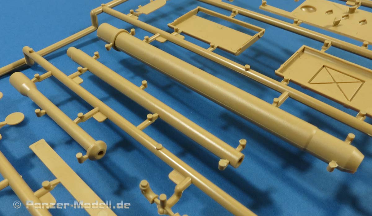Soweit aus der Anleitung ersichtlich ist die Kanone auch mit dem Anbau der Höhenrichtzylinder beweglich gestaltet. Die Teile dafür sehen recht gut aus.