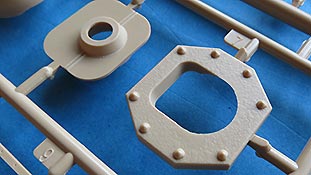Das aussen liegende Kanonenrohr liegt als einteiliges Rohr in Spritzguss bei und auch die Mündungsbremse in Plastik macht einen exzellenten Eindruck und ist nicht aus Halbteilen zusammenzusetzen.