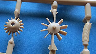 Ebenso erfreulich fein detailliert sind die Lüfterräder mit ihren Schaufelblättern, sowie die Keilriemen an den Generatoren als Spritzgussteile dargestellt.