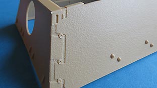 Auch die Bugplatten, an denen man die gewaltige Panzerstärke erkennen kann, weisen eine gute, raue Gussstruktur auf, fast zu schade, dass man sie mot Zimmerit abdecken muss.