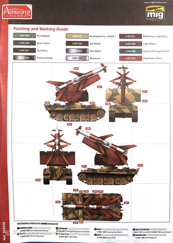 Mit der Nummer 35A036 kommt Amusing Hobby nun mit dem Set Rheintochter R-1 on Panther 2 chassis .