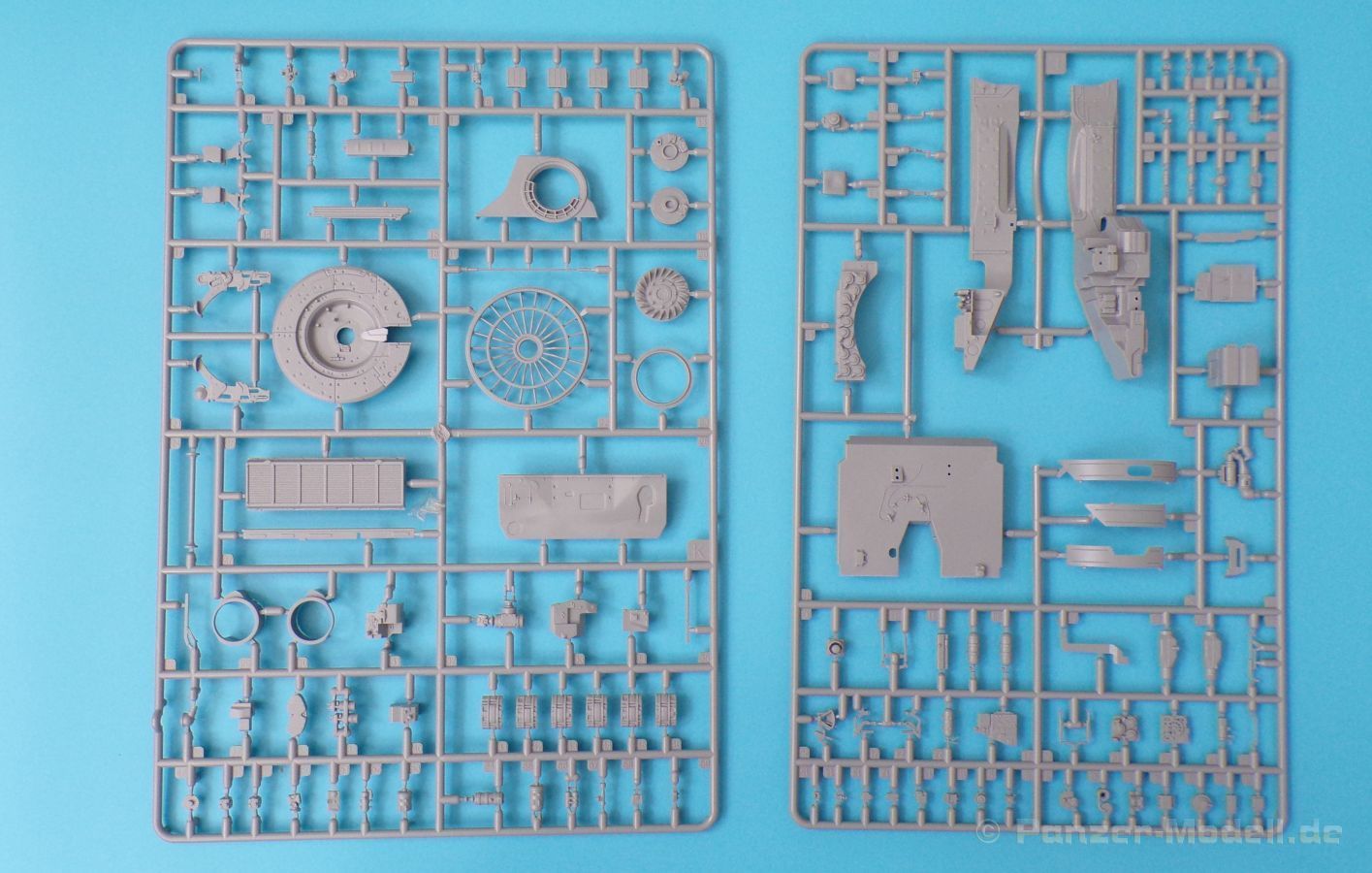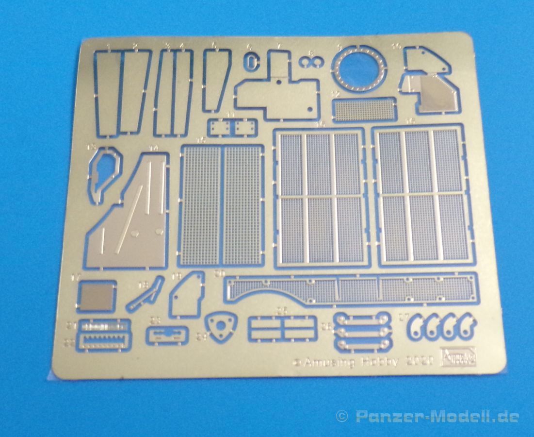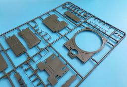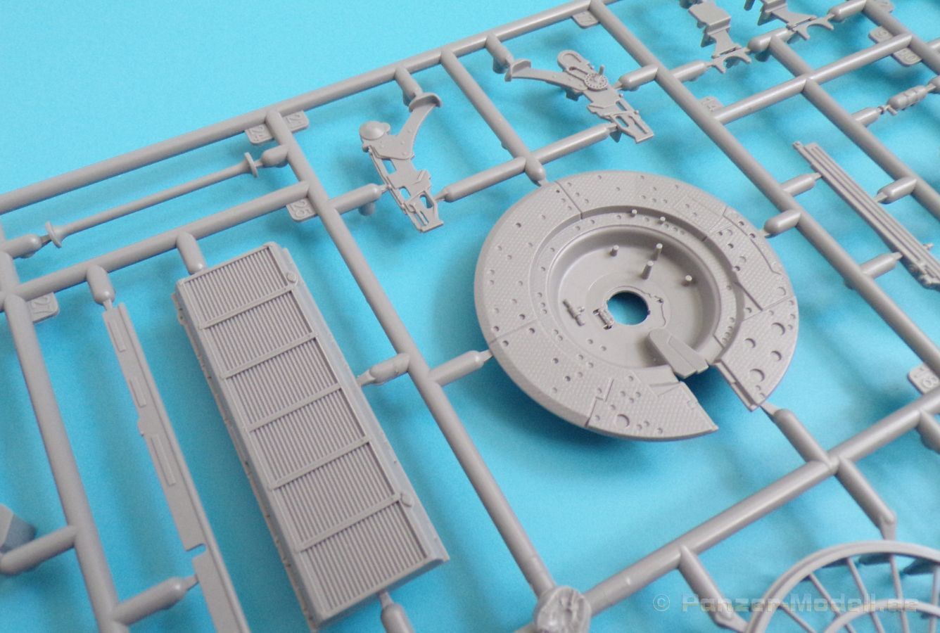 Die Detaillierung am gesamten Bausatz bewegt sich auf Top Niveau. Einige der Details werden auch durch die beiliegenden, nicht optionalen Fotoätzteile, dargestellt - zum Beispiel die Halter der Kettenbleche, sämtliche Lüftergitter und einige Details im Innenraum. An den Spritzlingen ist augenscheinlich weder Fischhaut zu finden noch sind auffällige Auswerfermarken an später sichtbaren Stellen zu erkennen.