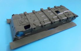Die typischen Heckfässer der T-72 Reihe sind hier im Slide-Mould-Verfahren hergestellt, und werden nur mit den Seitenteilen komplettiert. Die typischen Treibstoffleitungen, welche zum Motor führen, werden mit Hilfe einer Spiralfeder mit eingelegtem Draht simuliert. Eine tolle Idee, die ein realistischen Erscheinungsbild abgibt.