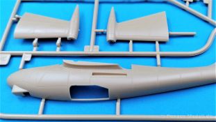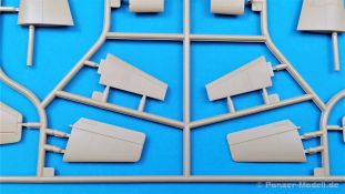 Auf dem Decalbogen sind alle Abzeichen für die Varianten enthalten. Der Druck ist matt und im Register. Ein interssantes Modell, das bereits aus dem Kasten gebaut und sorgfältig bemalt zum Eyecatcher wird. Spezialisten werden noch Verbesserungen vornehmen, vor allem im Cockpitbereich und in den Radschächten. Sehr empfehlenswerter Kit mit leichten Schwächen.