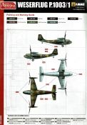 Der Projekt-Vorentwurf stammt bereits aus dem Jahr 1938. Geplant war ein Flugschrauber mit schwenkbaren Schrauben von 4m Durchmesser, die bei Start und Landung vertikal und nach Erreichen der Flughöhe horizontal arbeiten sollten. Das errechnete Fluggewicht sollte bei rund 2.000 kg liegen und als Antrieb war wahrscheinlich ein Reihenmotor von 900 PS (DM 600?) vorgesehen, der hinter der Kabine angeordnet war. Der Schacht für die Kühlluftzufuhr befand sich unter der Rumpfnase. Die errechnete Höchstgeschindigkeit sollte ca. 650 km/h pro Stunde betragen. Die Spannweite mit Luftschrauben lag bei 11 m, die Länge bei 8 m und die Rumpfbreite bei 1,15 m. Ãber eine (geplante) Bewaffnung habe ich nichts in Erfahrung gebracht. Lediglich ein Modell dieses Senkrechtstarters wurde gebaut. Man kann dieses Projekt von Weserflug durchaus als den ersten Entwurf eines Flugschraubers oder Senkrechtstarters bezeichnen. Dieser wurde damals in Deutschland aber nie aufgegriffen. Erst später wurde in den USA und der UdSSR diese Idee weiterentwickelt. Zumindest als Modell kann man sich dieses Flugzeug, nach dem Fw Triebflügler der zweite Streich von Amusing Hobby, in die Vitrine stellen. Sehen wir uns alles mal genauer an. In dem mit einem tollen Deckelbild versehenen Stülpkarton finden wir ânurâ zwei sandfarbene Spritzlinge, ein Klarsichtteil und den Decalbogen. Allerdings ist die überschaubare Teileanzahl vollkommen ausreichend. Der Guss der Bauteile ist wirklich gut. Keine Auswerferstellen, kein Versatz, keine unnötigen Grate, lediglich ein paar minimale Fischhäute. Der größere Rahmen beherbergt alle Komponenten für den Bau des Rumpfes und der Flügelsektionen. Auffallend ist die Tatsache das diese Teile feinste Gravuren besitzen. Auch Nietenreihen sind sehr schön gesetzt. Meiner Meinung hätten diese aber etwas prägnanter sein können. Gut, spätestens bei der Lackierung dürfte sich das evtl. bemerkbar machen oder man graviert im Vorfeld nach. Jedenfalls sieht das sehr gut aus. Die äußeren Flügelsektionen können beweglich gebaut werden. Somit ist die Darstellung beim Start oder im Flug möglich. Im kleineren Rahmen finden wir alle restlichen Teile für die Komplettierung des Flugschraubers. Das Cockpit erscheint etwas sehr spartanisch zu sein. Das Führergerätebrett zeigt einige Instrumente in erhabener Form während die Seitenkonsolen einer Nachbearbeitung bedürfen. Gut einsehbar ist das Cockpit durch die schlierenfreie Kanzel. Das bleibt aber jedem selbst überlassen. Unter die rechte Tragfläche kommt noch ein Luftfilter für den Motor, ähnlich den Tropenfiltern. Die Radschächte weisen innen bereits einige Details auf, die aber noch verfeinert werden können. Auch die Fahrwerksstreben machen einen guten Eindruck. Die Räder besitzen leider kein Profil. Allerdings sollte sich dieser Umstand bei der Größe nicht bemerkbar machen. Zu ergänzen wären wie üblich die Bremsleitungen. Die Propeller sind sehr gut umgesetzt und schon im richtigen Winkel gespritzt. Sieht sehr gut aus. Schön wäre noch die Beigabe von geätzten Sicherheitsgurten gewesen. Die Bauanleitung führt uns in 7(!) Schritten zum Ziel. Alles übersichtlich und klar strukturiert. Auf den letzten Seiten der Bauanleitung werden uns drei Bemalungs- und Markierungsvorschläge, jeweils in 4-Seitenansichten, vorgestellt. Diese sind aus dem Haus AMMO by MIG. Farbangaben aus dem gleichen Haus. Nette Idee auch die Weathering Steps unter den Profilen. Auf Einheiten wird nicht eingegangen und wäre nur spekulativ.