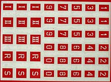 Es enthält 45 Schablonen - je 3mal die Ziffern 0-9 und dazu die Symbole I, II, III, R und S..