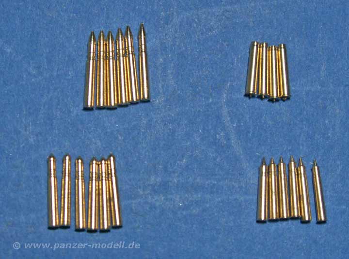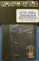 Für die 37mm PaK35/36 oder auch Fahrzeuge mit der 37mm Kanone L/45 gibt es mit der Nummer A35-005 ein separates Munitionsset für die 37mm PaK35/36. Dieses besteht aus 4 leeren Hülsen, 6 PzGr.40 (AP), 6 PzGr. Patr. (AP) und 6 Spgr. Patr. (HE).