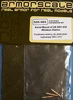 Armorscale erfreut den Modellbauer mit einer neuen Reihe, denren Beginn die Aerial Mounts of US SRC 610 Wireless Station mit der Nummer S35-001. Es handelt sich hierbei um messinggedrehte Antennenbasen für das US SRC 610 aus dem 2.Weltkrieg.