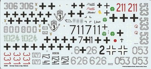 Unter der Nummer 35066 gibt es einen Decalbogen für German Tanks in Italy. Part 1 - 1943-44.